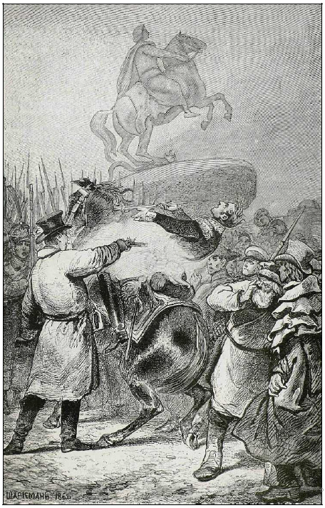 Назовите российского императора, вступление которого на престол было непосредственно связано с событиями, изображёнными на картине.