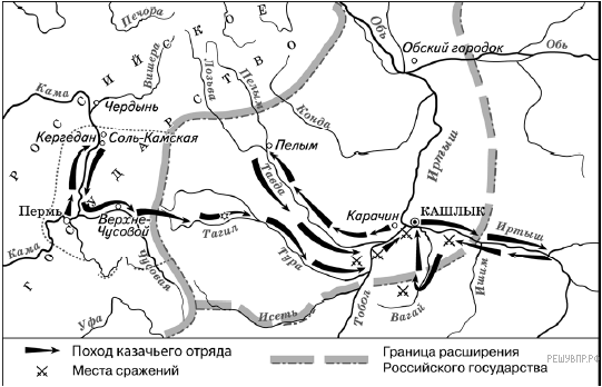 Назовите казачьего атамана, по имени которого назван поход, обозначенный на схеме. В ответе укажите только его имя.