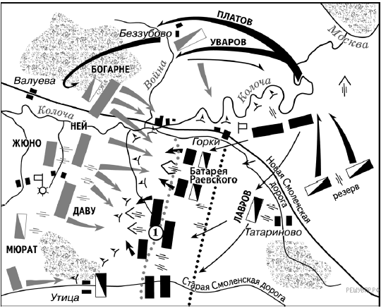 Запишите слово, пропущенное в фразе. «На схеме показаны события ключевой битвы _____________1812 г».