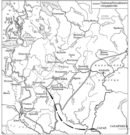 Укажите век, когда установились границы Российского государства, обозначенные на схеме.