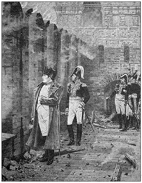 Назовите исторического деятеля, изображённого на картине на переднем плане. Назовите город, где происходит действие картины.