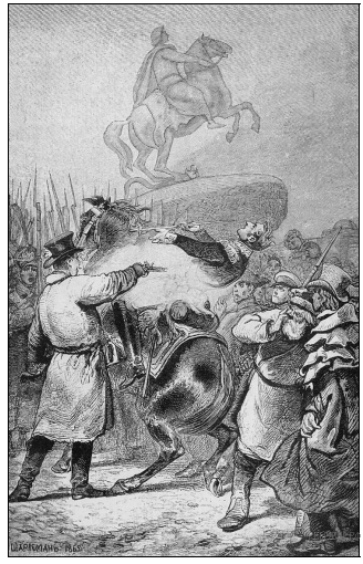 Укажите год, когда произошли события, изображённые на данном рисунке. Укажите название площади, где произошли эти события.